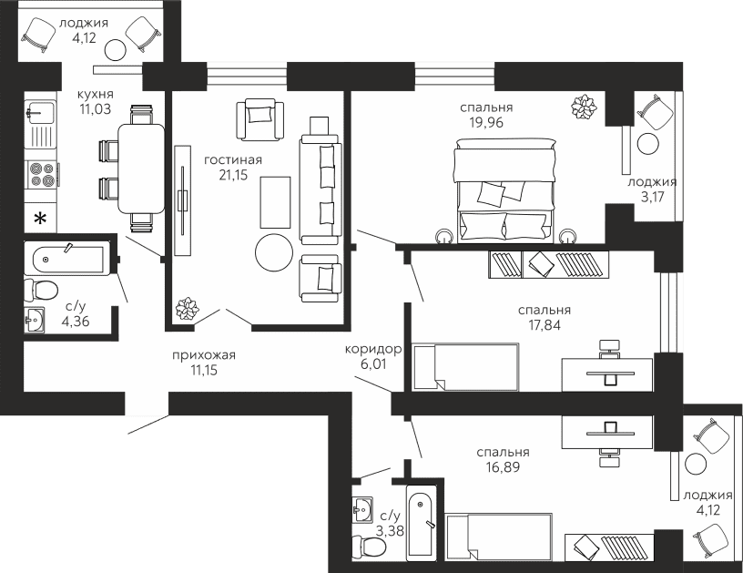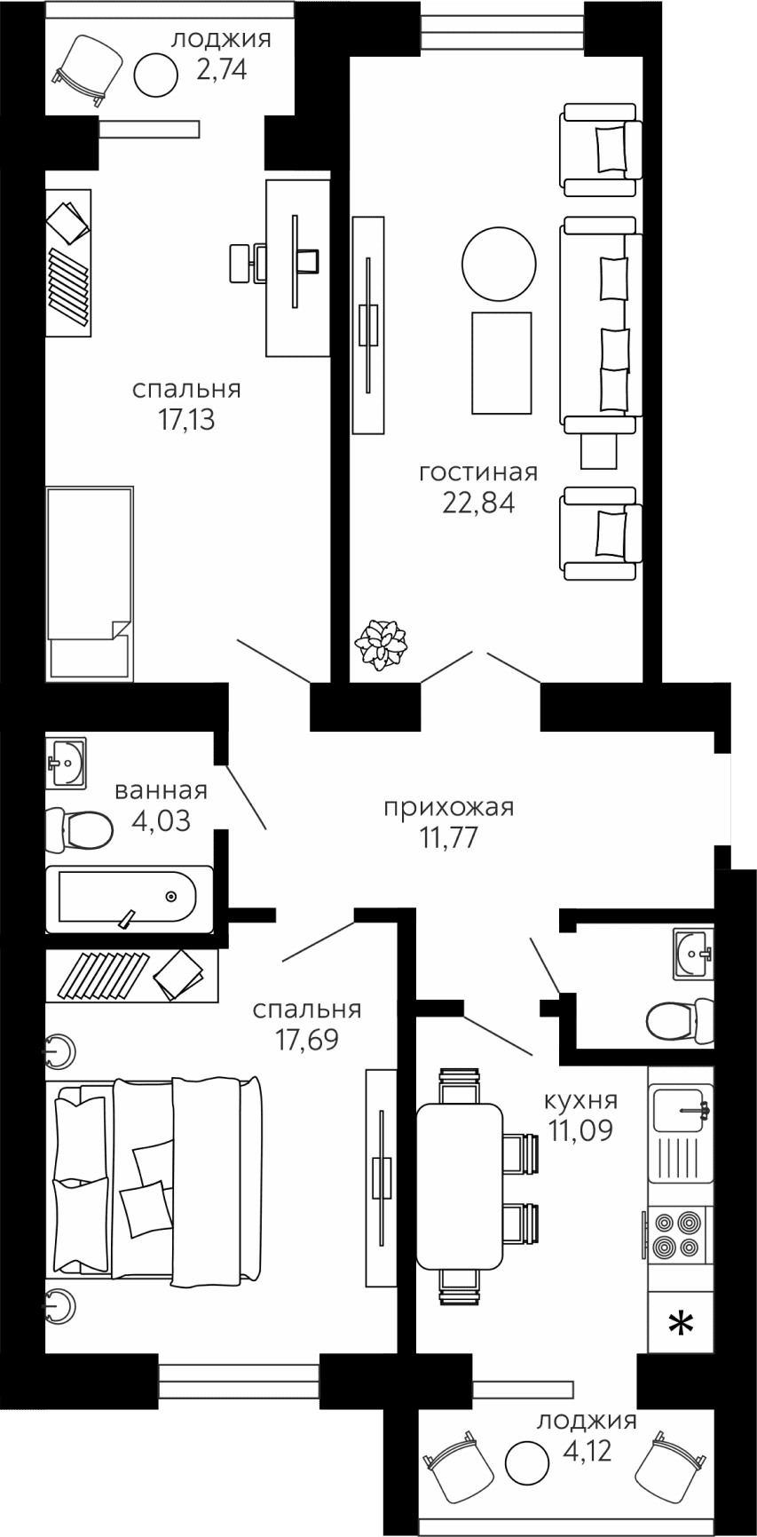 Квартиры сдаются в предчистовой отделке.